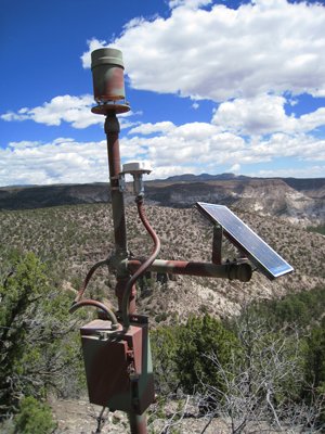 OneRain developed and deployed several of their StormLink Monitoring Stations around the Santa Fe National Forest at Bandelier National Monument, Santa Clara Pueblo and the Cochiti Pueblo. Each consisted of either a rainfall gauge or a stream gauge connected to a satellite messaging terminal manufactured by SkyWave Mobile Communications and powered by a 10-watt solar panel.